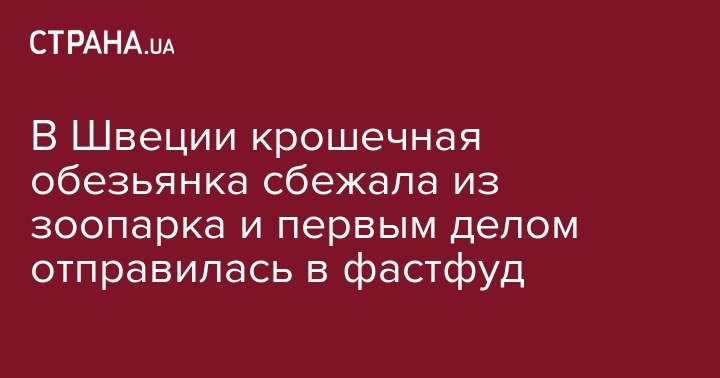 В Швеции крошечная обезьянка сбежала из зоопарка и первым делом отправилась в фастфуд