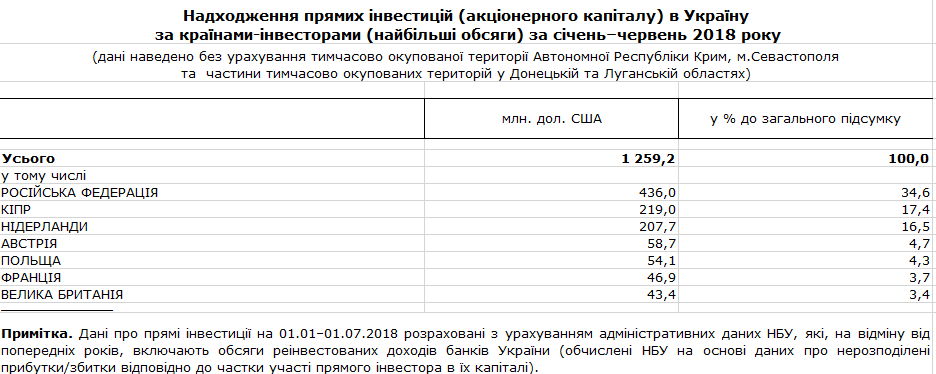 Как видим, РФ пока держит первое место по инвестициям с 436 миллионами долларов. На второй ступени по уровню инвестирования в Украину находится Кипр, который вложил 219 млн долларов, на третьем месте находятся Нидерланды - 207,7 млн долларов. В двух последних случаях это, как правило, украинские деньги, которые ранее были выведены за границу.