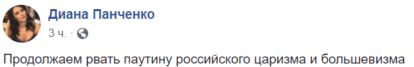 "Продолжаем рвать паутину российского царизма и большевизма", - написала в Facebook телеведущая Диана Панченко.