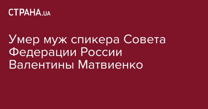 Владимир Матвиенко, супруг председателя Совета Федерации Валентины Матвиенко,  сообщили в пресс-службе верхней палаты  российского парламента.