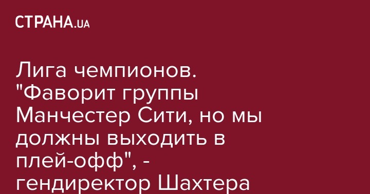 Лига чемпионов. "Фаворит группы Манчестер Сити, но мы должны выходить в плей-офф", - гендиректор Шахтера