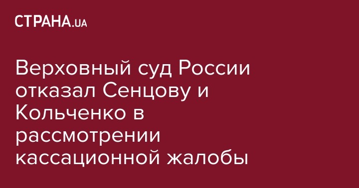 Верховный суд России отказал Сенцову и Кольченко в рассмотрении кассационной жалобы