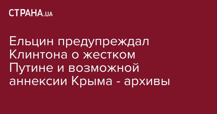 Ельцин предупреждал Клинтона о жестком Путине и возможной аннексии Крыма - архивы