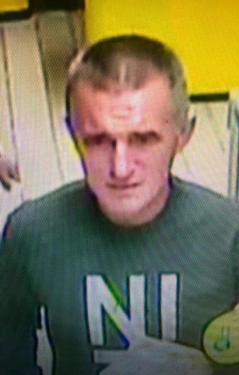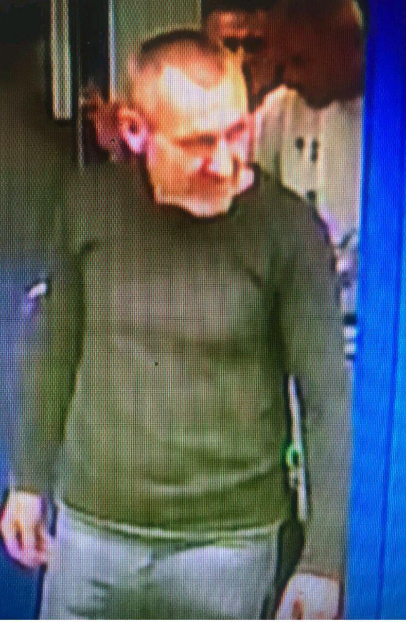 Подозреваемый №1: возраст 35-40 лет, худощавого телосложения, рост 170-175 см, волосы светло-русые, с залысинами, коротко стриженные волосы, тонкие губы, высокий лоб, дугообразные брови, нос прямой острый, лицо овальной формы. Был одет в темно-зеленую кофту с длинным рукавом, спереди на кофте надпись "NIKE" белыми буквами, брюки темного цвета, кроссовки черного цвета.
