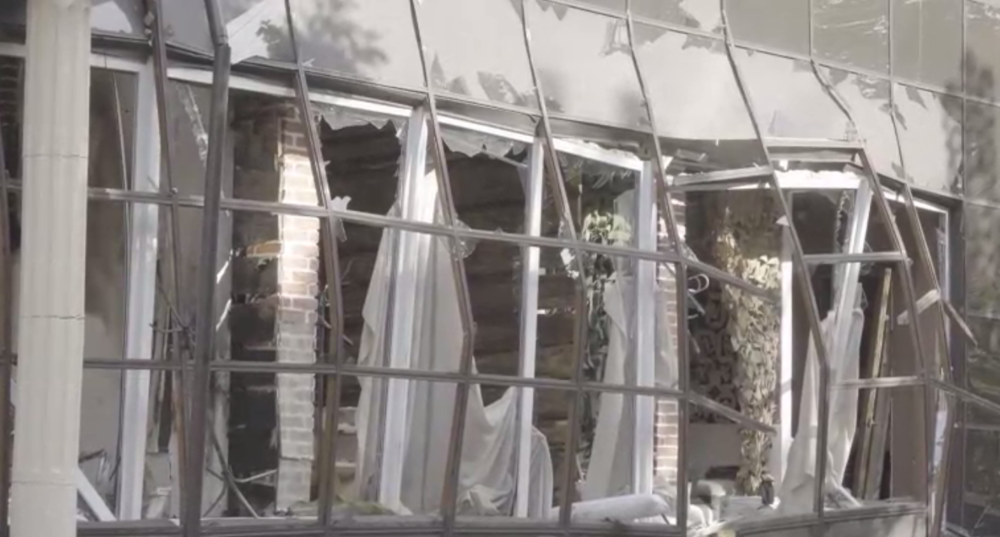 Входа в кафе, как такового не существует. Мощным взрывом его просто вынесло.