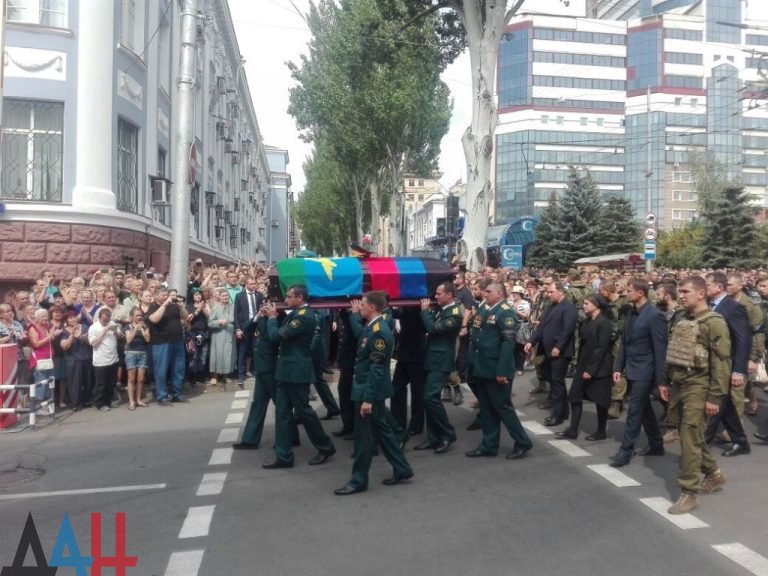 Двухсоттысячная колонна людей, следовавших за гробом, прошла от столичного театра оперы и балета до здания администрации главы т.н. "ДНР" на улице Артема.