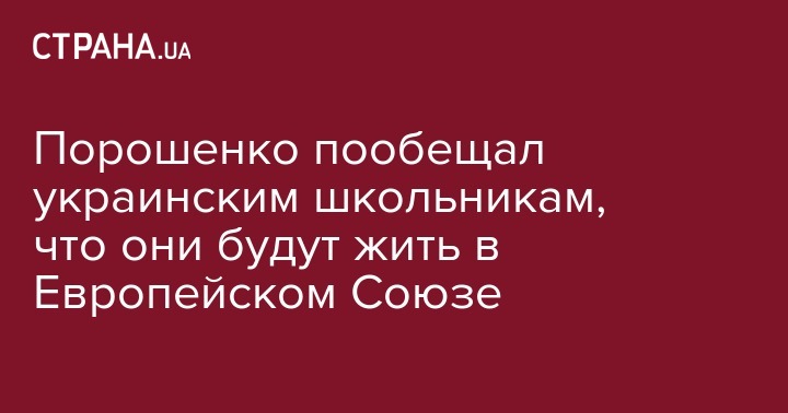 Президент Петр Порошенко заявил, что сегодняшние школьники точно будут жить в Европейском Союзе. Этот тезис прозвучал в его речи во время торжественных мероприятий по случаю начала нового учебного года в лицее "Наукова зміна" в Киеве, пишет "Украинская правда".