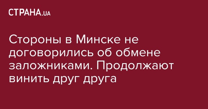 На заседании трехсторонней контактной группы в Минске участники не смогли договориться об обмене пленных, или о выдаче заложников, которых удерживают на территории "ДНР"\"ЛНР". Об этом на своей странице в Facebook сообщила первый вице-спикер Верховной Рады, уполномоченный президента по вопросам мирного урегулирования ситуации на Донбассе Ирина Геращенко (входит в состав группы - Прим. Ред).