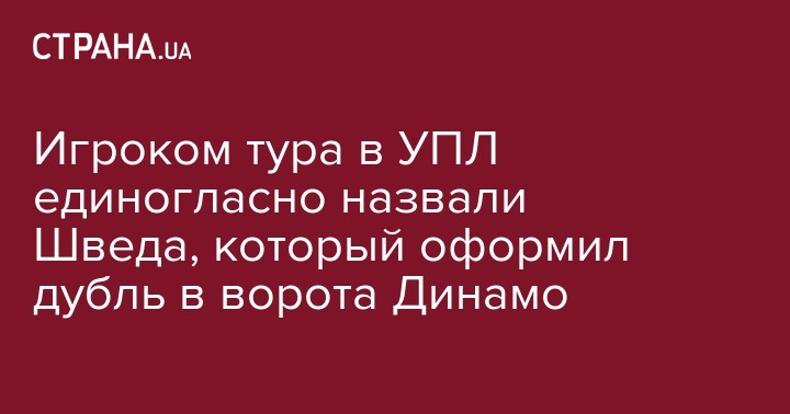 Игроком тура в УПЛ единогласно назвали Шведа, который оформил дубль в ворота Динамо