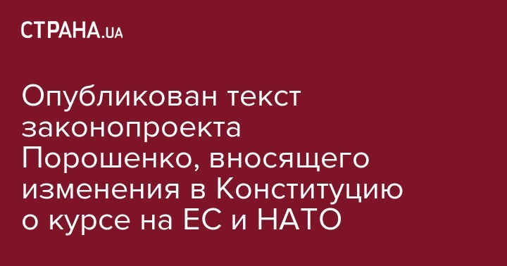 "Предлагаемая законодательная инициатива имеет целью внесения необходимых изменений в Конституцию Украины для реализации целенаправленного прагматического курса Украины на обретение полноправного членства Украины в Европейском Союзе и в Организации Североатлантического договора как стратегических внешнеполитических приоритетов государства", - говорится в пояснительной записке.