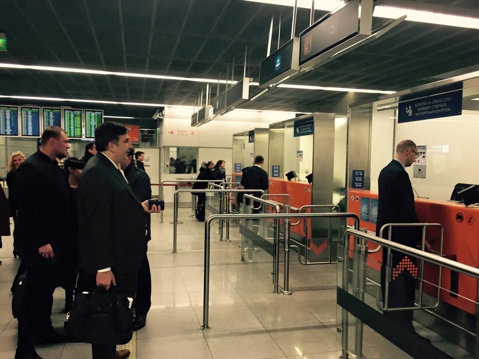 Яценюк повторил перелет в экономе в марте 2015 года в компании Михаила Саакашвили. Политики летели через Варшаву в Брюссель. Фотографии выложил пользователь Zenia Klimakin.