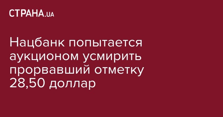 Нацбанк не стал дожидаться более значительного взлета котировок и с самого утра заявил о проведении масштабного аукциона. Готов продать из резервов до 100 млн. Заявки собирает до 12:30. Впрочем, если в НБУ рассчитывали на значительный психологический эффект от неожиданно раннего заявления о грядущих интервенциях, то просчитались. Котировки снизились лишь на 3 копейки - до 28,47-28,50 грн./$.