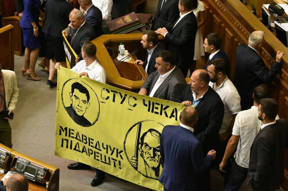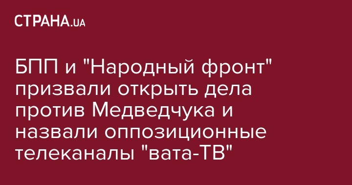 Представители фракций "Блок Петра Порошенко" и "Народный фронт" в зале Рады призвали Генпрокуратуру и Службу безопасности провести расследование относительно антиукраинской деятельности Виктора Медведчука и "пророссийских" телеканалов, которых они именуют "вата-ТВ". Об этом заявил нардеп Андрей Левус, пишет "Украинская правда".