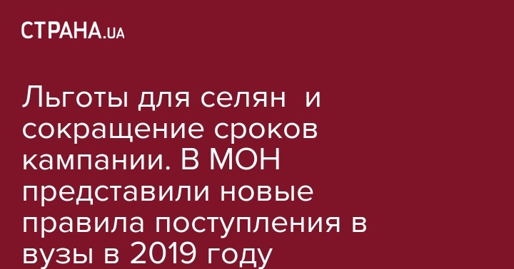 Министерство образования и науки Украины представило новые правила приема в вузы на 2019 год. Документ размещен на сайте Минобразования для общественного обсуждения. В документе преддагается сократить сроки вступительной кампании, проводить творческие конкурсы к основной сессии ВНО, первоочередное зачисление тех, кто в дальнейшем желает работать в селах и тому подобное.