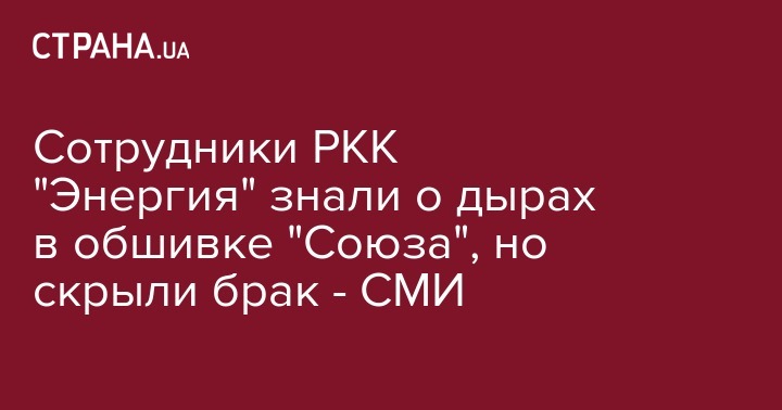 Сотрудники РКК "Энергия" знали о дырах в обшивке "Союза", но скрыли брак - СМИ