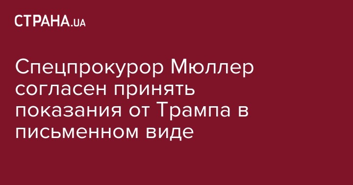 Специальный прокурор США Роберт Мюллер, который ведет расследование российского вмешательства в американские выборы заявил о своей готовности принять ответы президента Дональда Трампа в письменной форме.