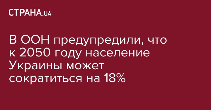 Из-за трудовой миграции население Украины к 2050-му году может сократиться на 18%. Такие данные приводит Организация объединенных наций, сообщает "112 Украина".