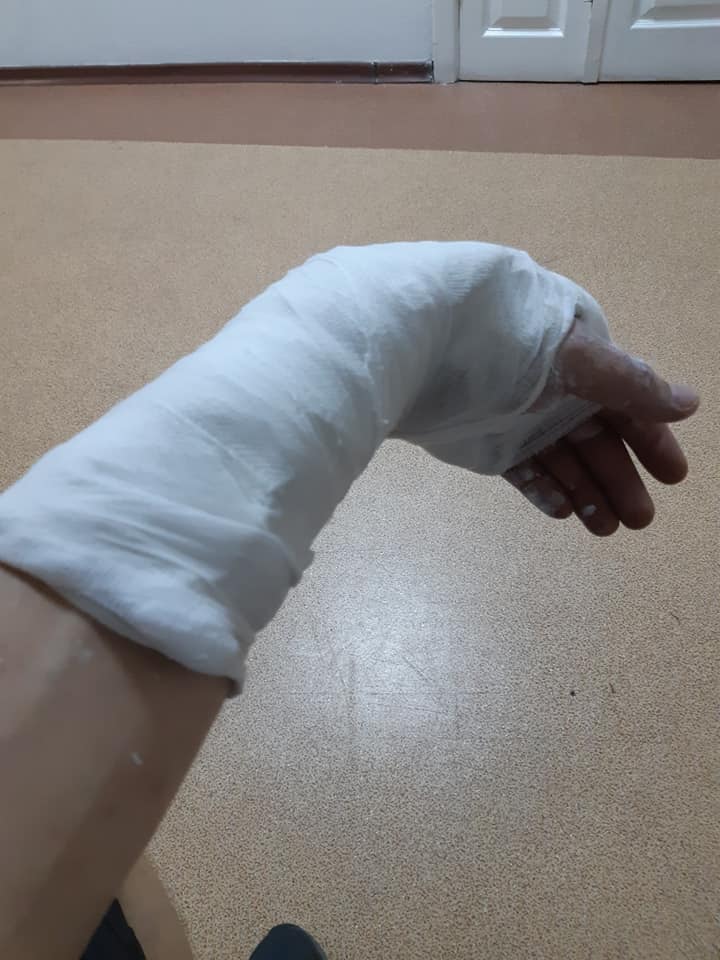 "Из-за численного физического перевеса им пару раз удалось сбить меня с ног и нанести несколько акцентированных ударов ногами. По всей видимости, одним из которых, как оказалось позже, они сломали мне руку", - заявил пострадавший.