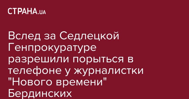 Генеральная прокуратура Украины  получила разрешение суда на проверку сообщений, разговоров и перемещения телефона журналистки издания "Новое время" Кристины Бердинских. Об этом она сама сообщила на своей странице в соцсети.