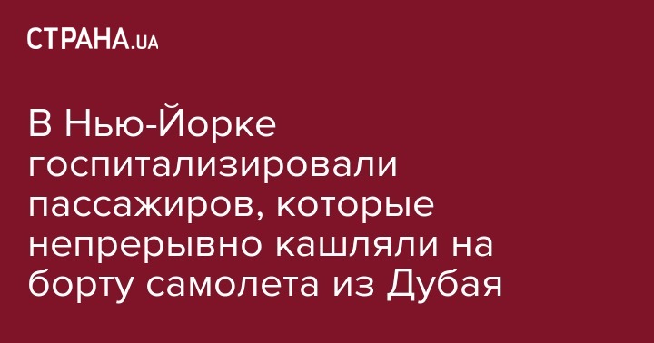 Беспрерывно кашляющие пассажиры самолета, прибывшего из Дубая в Нью-Йорк и попавшего в карантин, покинули борт. Десять пассажиров направлены в больницу. Об этом сообщил пресс-секретарь мэра Нью-Йорка Эрик Филлипс в Twitter.