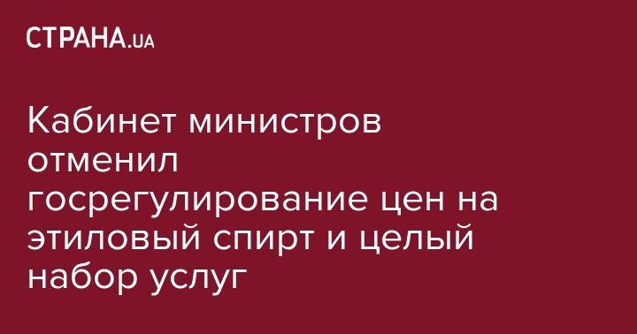 Кабинет министров отменил государственное регулирование цен на ряд товаров и услуг, в том числе этиловый спирт и некоторые услуги в сфере энергетики.