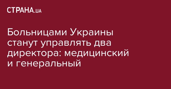 Больницами Украины станут управлять два директора: медицинский и генеральный