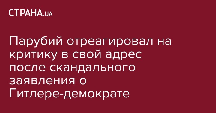 Парубий отреагировал на критику в свой адрес после скандального заявления о Гитлере-демократе