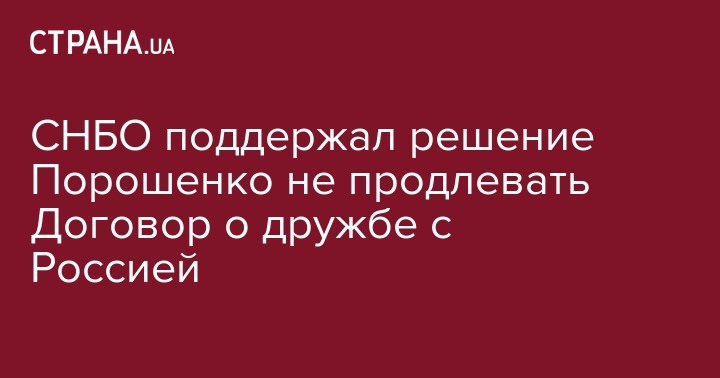 Совет национальной безопасности и обороны (СНБО) Украины на заседании в четверг поддержал инициативу президента Петра Порошенко о непродлении Договора о дружбе, партнерстве и сотрудничестве с РФ на 10 лет.