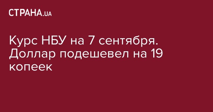 Курс НБУ на 7 сентября. Доллар подешевел на 19 копеек