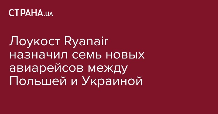 Ирландская авиакомпания-лоукостер Ryanair запустит 17 новых авиарейсов из Польши. Семь из них вылетят на маршруты между Польшей и Украиной, передает  ТЦС.