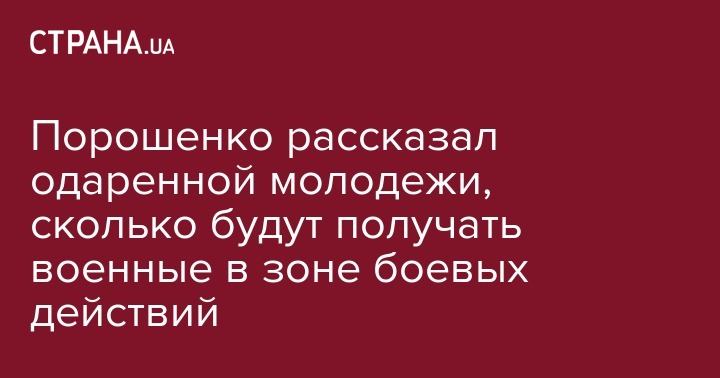 Порошенко рассказал одаренной молодежи, сколько будут получать военные в зоне боевых действий