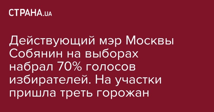 По результатам обработки 99% протоколов участковых избирательных комиссий, действующий мэр Москвы, самовыдвиженец Сергей Собянин набирает 70,02% голосов избирателей, сообщает Интерфакс.