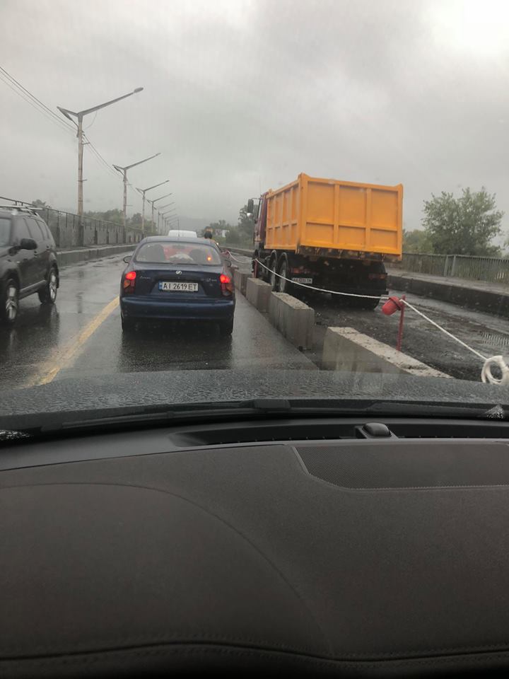 Как сообщает корреспондент "Страны", ремонт проезжей части в утренний час пик привел к тому, что движение автомобилей с левого берега практически остановилось.