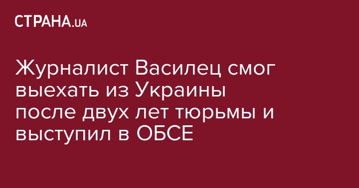 Журналист Василец смог выехать из Украины после двух лет тюрьмы и выступил в ОБСЕ