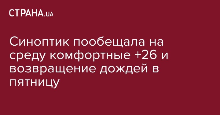 "Завтра днем ​​ожидается температурный комфорт, + 23... + 26 градусов, на востоке до + 25... + 28 градусов. Циклон, который еще сегодня кое-где гремит и поливает дождями, завтра вытеснится антициклоном с запада Европы.