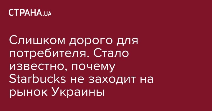Американская компания по продаже кофе Starbucks, чье появление в Киеве анонсировал сам мэр Кличко, является слишком дорогой для потребителя на украинском рынке. Поэтому компания не выходит на украинский рынок. Об этом сообщила глава офиса Национального инвестиционного совета Юлия Ковалив в эфире программы "Гроші вперед!" на Радио НВ.