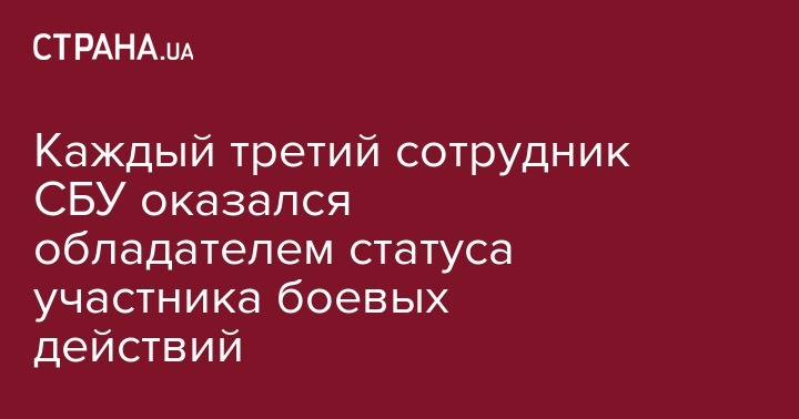 Каждый третий сотрудник Службы безопасности Украины (СБУ) уже получил официальный статус участника боевых действий (УБД). В целом статус УБД получили 10 745 сотрудников СБУ. Также известно, что 2 сотрудника спецслужбы были лишены данного статуса.