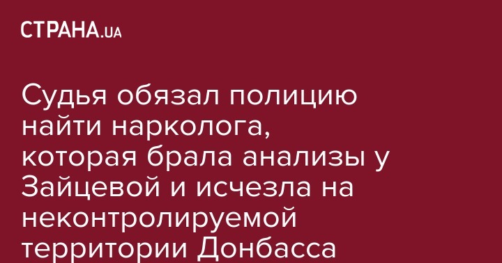 Судья обязал полицию найти нарколога, которая брала анализы у Зайцевой и исчезла на неконтролируемой территории Донбасса