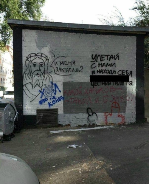 В Харькове уже неделю длится "война" из-за уличного граффити. Полем битвы стала стена на улице Гоголя 2-А. После того, как недовольные местные жители закрасили стрит-арт, который был нарисован два года назад, они буквально открыли ящик Пандоры. Теперь надписи и рисунки приходится закрашивать каждый день, а стена стала популярной площадкой, на которой свое мнение высказали уже десятки человек. У нее даже появилась собственная страница в Instagram, а о противостоянии вокруг работы "харьковского Бэнкси" пишут СМИ, в том числе зарубежные.