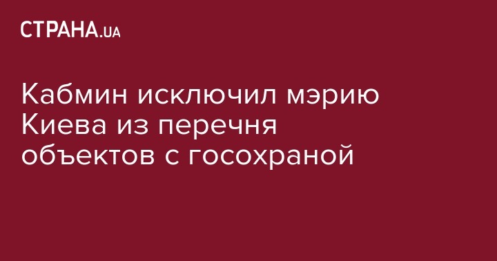 Кабмин исключил Киевский горсовет и Киевскую городскую государственную администрацию (КГГА) из перечня объектов, подлежащих обязательной охране подразделениями Государственной службы охраны при МВД.