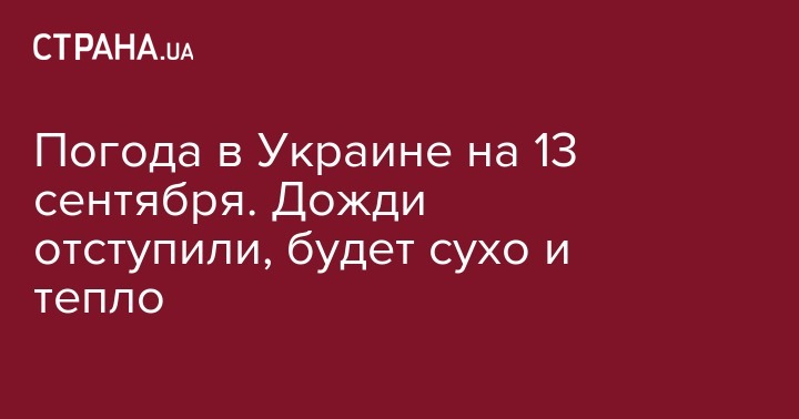 Погода в Украине на 13 сентября. Дожди отступили, будет сухо и тепло