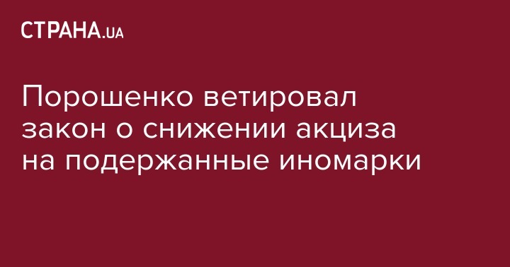 Президент Петр Порошенко наложил вето на закон, предусматривающий снижение акциза для иномарок на вторичном авторынке. Об этом на своей странице в социальной сети Facebook написал депутат Верховной Рады Владимир Парасюк.