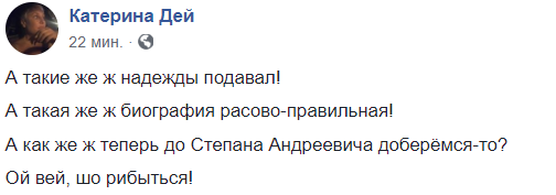 "А такие же ж надежды подавал! А такая же ж биография расово-правильная! А как же ж теперь до Степана Андреевича доберёмся-то?", - пишет блогер Екатерина Дей.