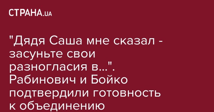 "Дядя Саша мне сказал - засуньте свои разногласия в...". Рабинович и Бойко подтвердили готовность к объединению