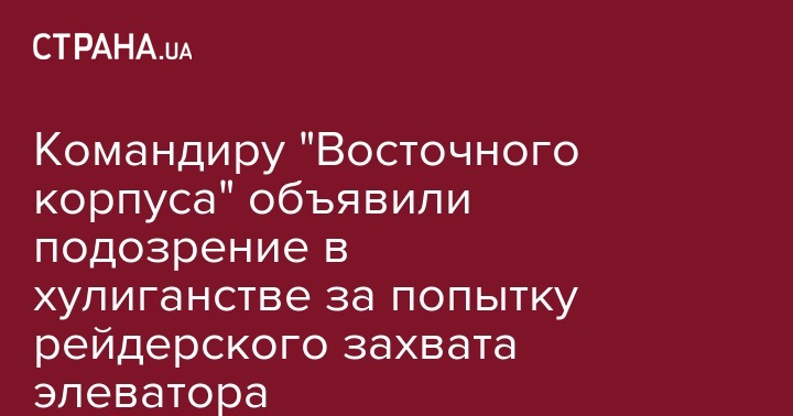 Экс-командиру "Восточного корпуса" Ширяев объявили о подозрении в хулиганстве после попытки захвата элеватора под Харьковом. В настоящее время мужчина задержан полицией. Об этом сообщает "Интерфакс-Украина".
