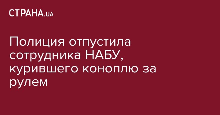 Полицейские отпустили сотрудника Национального антикоррупционного бюро (НАБУ), который был задержан вчера, 12 сентября, вечером в Киеве с наркотическими веществами. Об этом пресс-служба киевской полиции сообщила Украинским новостям.