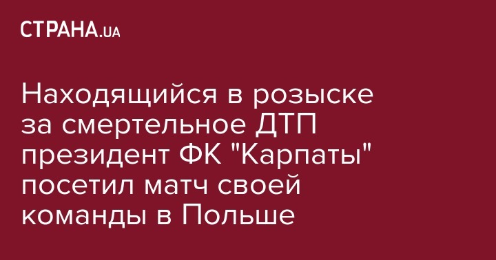 Находящийся в розыске за смертельное ДТП президент ФК "Карпаты" посетил матч своей команды в Польше