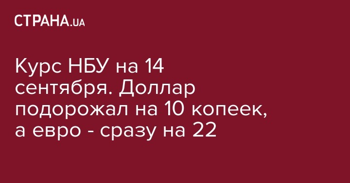 Курс НБУ на 14 сентября. Доллар подорожал на 10 копеек, а евро - сразу на 22