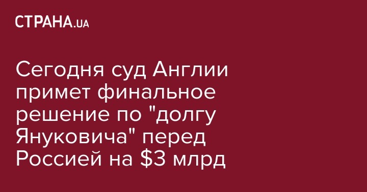 Сегодня суд Англии примет финальное решение по "долгу Януковича" перед Россией на $3 млрд