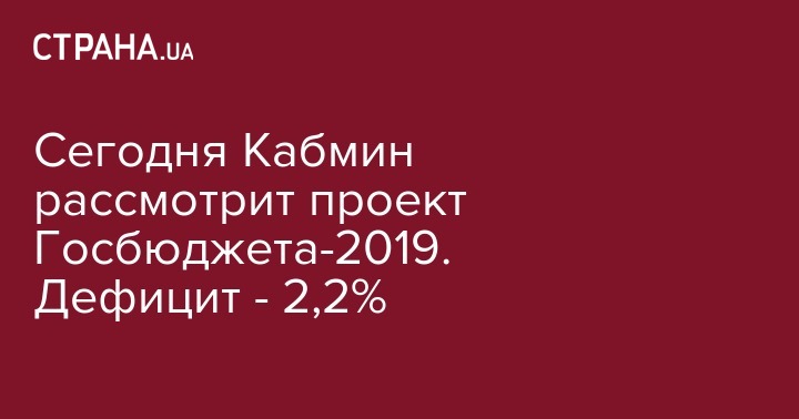 Кабинет министров Украины планирует заложить в проекте государственного бюджета на 2019 год дефицит на уровне 2,2%.